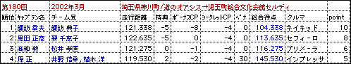 2002年3月のカーオリ結果:3月31(日)