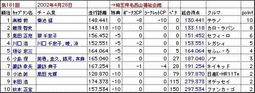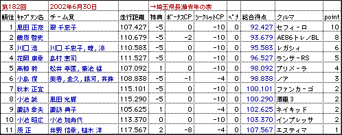 2002年1月-6月・カーオリ結果表 |