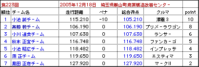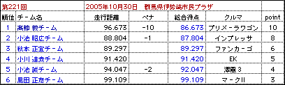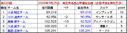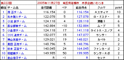 小池誠記者談:チームmakuroがボーナス獲得失敗(ボーナス直前でオーバースピードになっていないか確認を行って時間を浪費した結果、ボーナス早着に1分間に合わず)。高柳チームが早着1位でボーナス10kmを獲得、そのまま優勝! 昴人チームは2位獲得、年間チャンピオン決定は次戦以後に持ち越し!! チームmakuroは5位に転落、3,4位を獲得した小川チーム、携帯空間チームとの年間3位争いは、いよいよ混沌!! 来月(11)は岩槻開催となります。 年間優勝、3位争いの行方や、如何に!