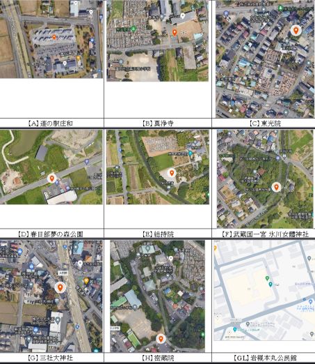 ACP:古河公方公園、BCP:加須スケートパーク、CCP:境河岸乗船場、DCP:龍Q館、 ECP:逆井城跡公園、FCP:八坂公園、GCP:常総市地域交流センター |