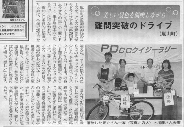 クイジーラリーの記事が埼北よみうり新聞社さんの”埼北よみうり 平成18年9月22日”に掲載されました。 ![]() |